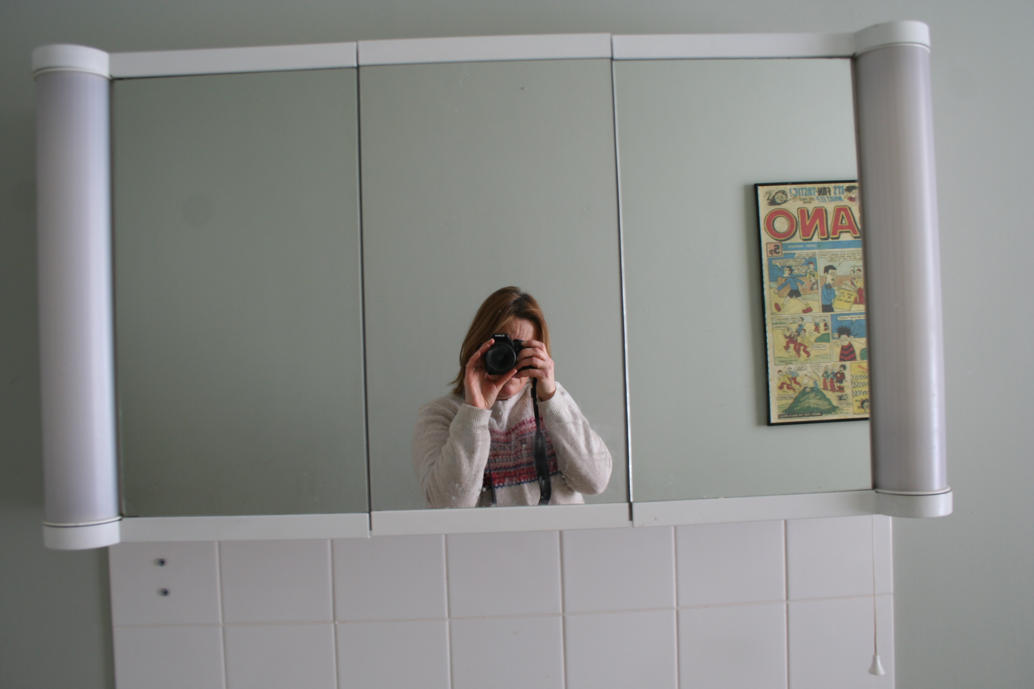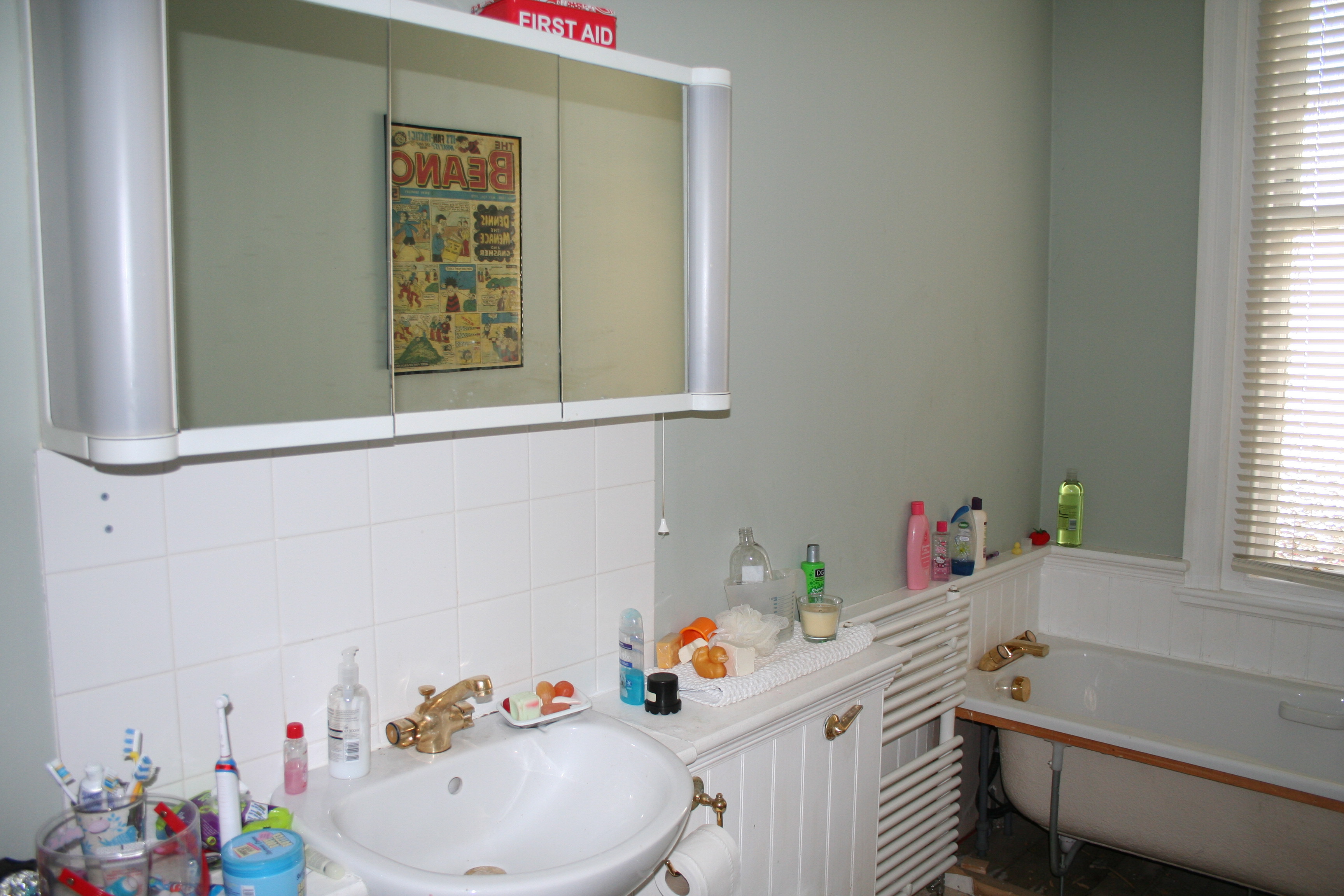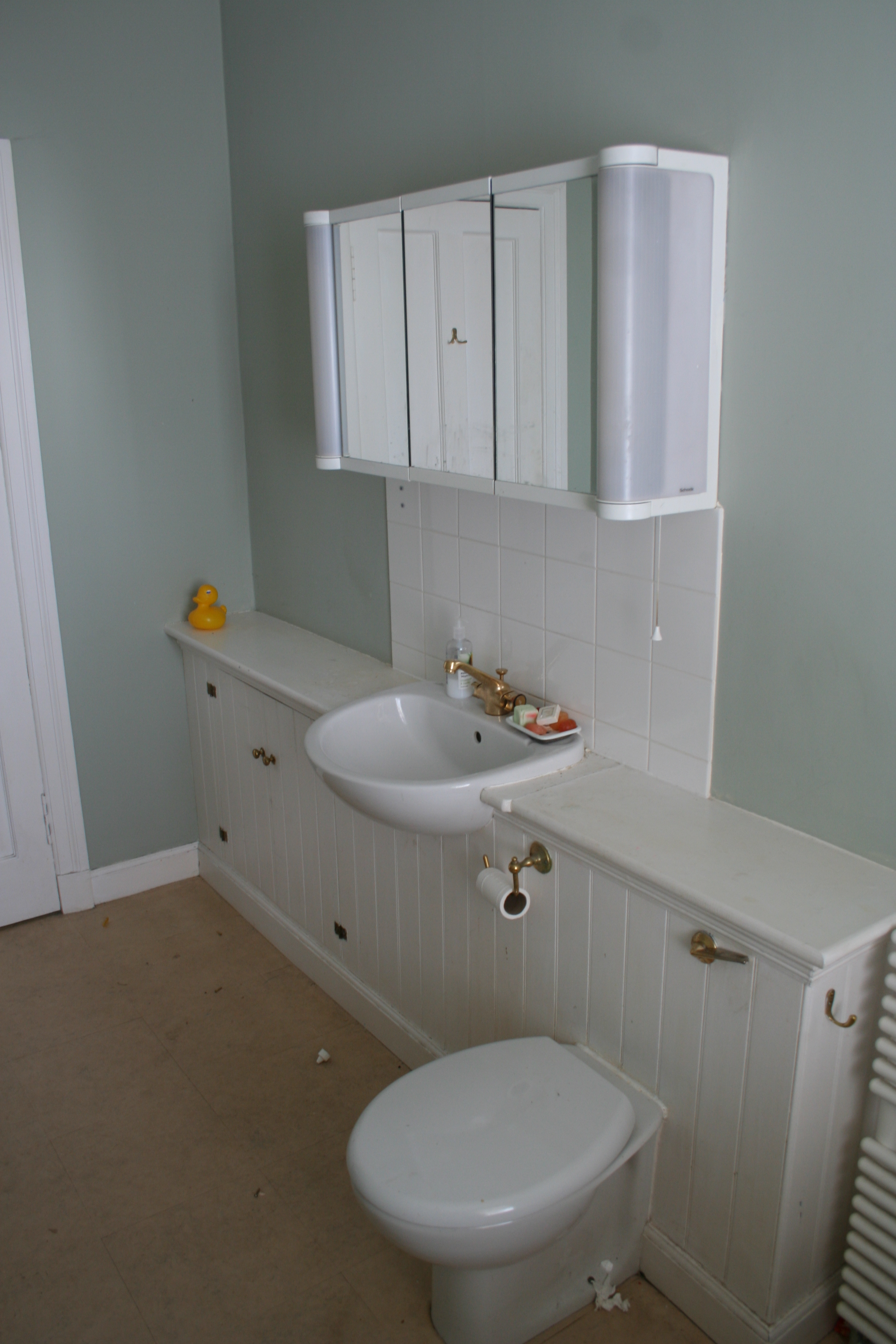 This bathroom cabinet is the best ever, you can see the back of your hair and it has the most flattering light.  It’s great for doing your face in too.  It should be going in the skip since it is beginning to fall to bits but I am very tempted to keep it.  I know what my husband will say.