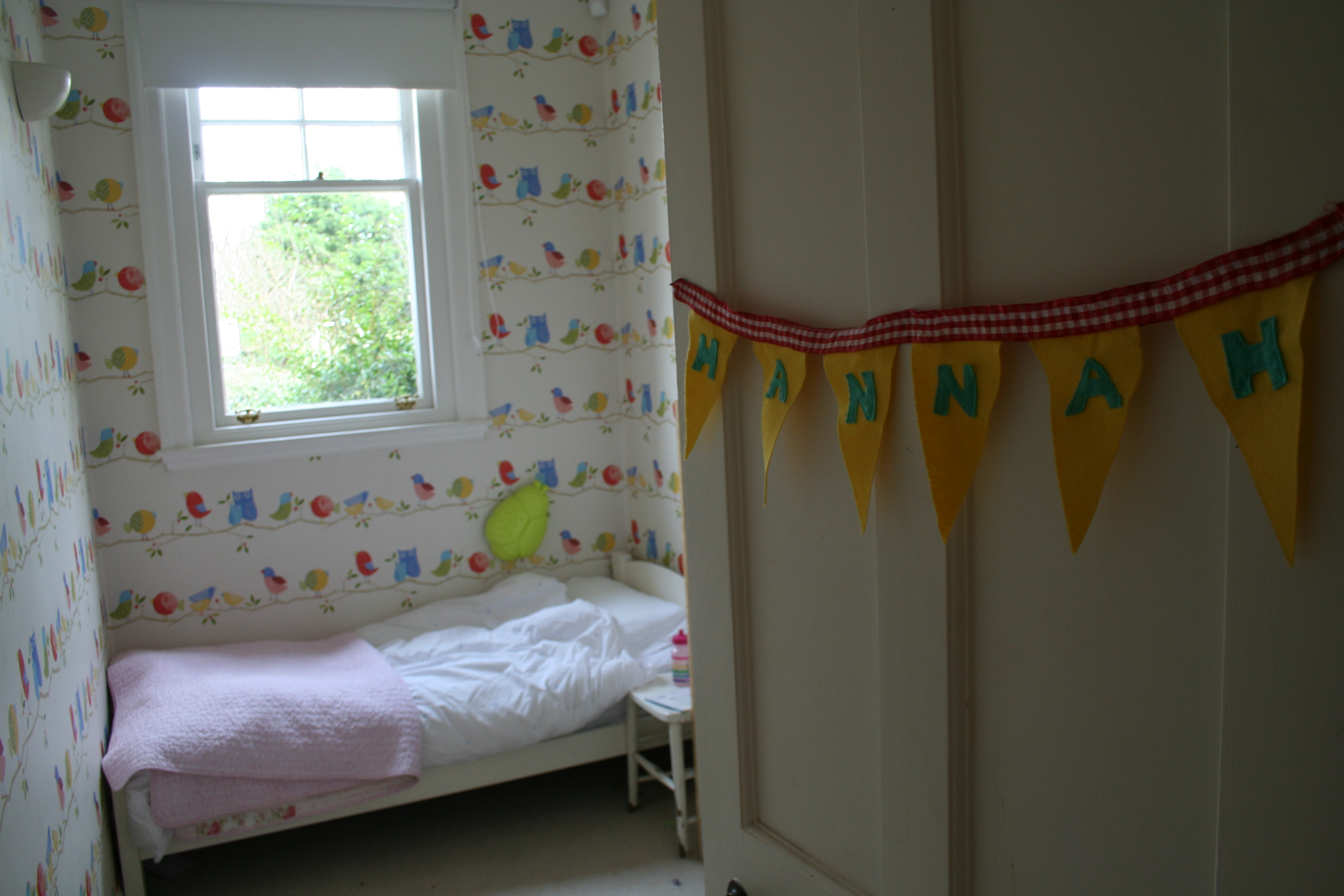 H’s room is clear now,  it was the perfect little room for a preschooler.  She’s a big schoolgirl now. Time to move on, I’ll miss how cosy it is.