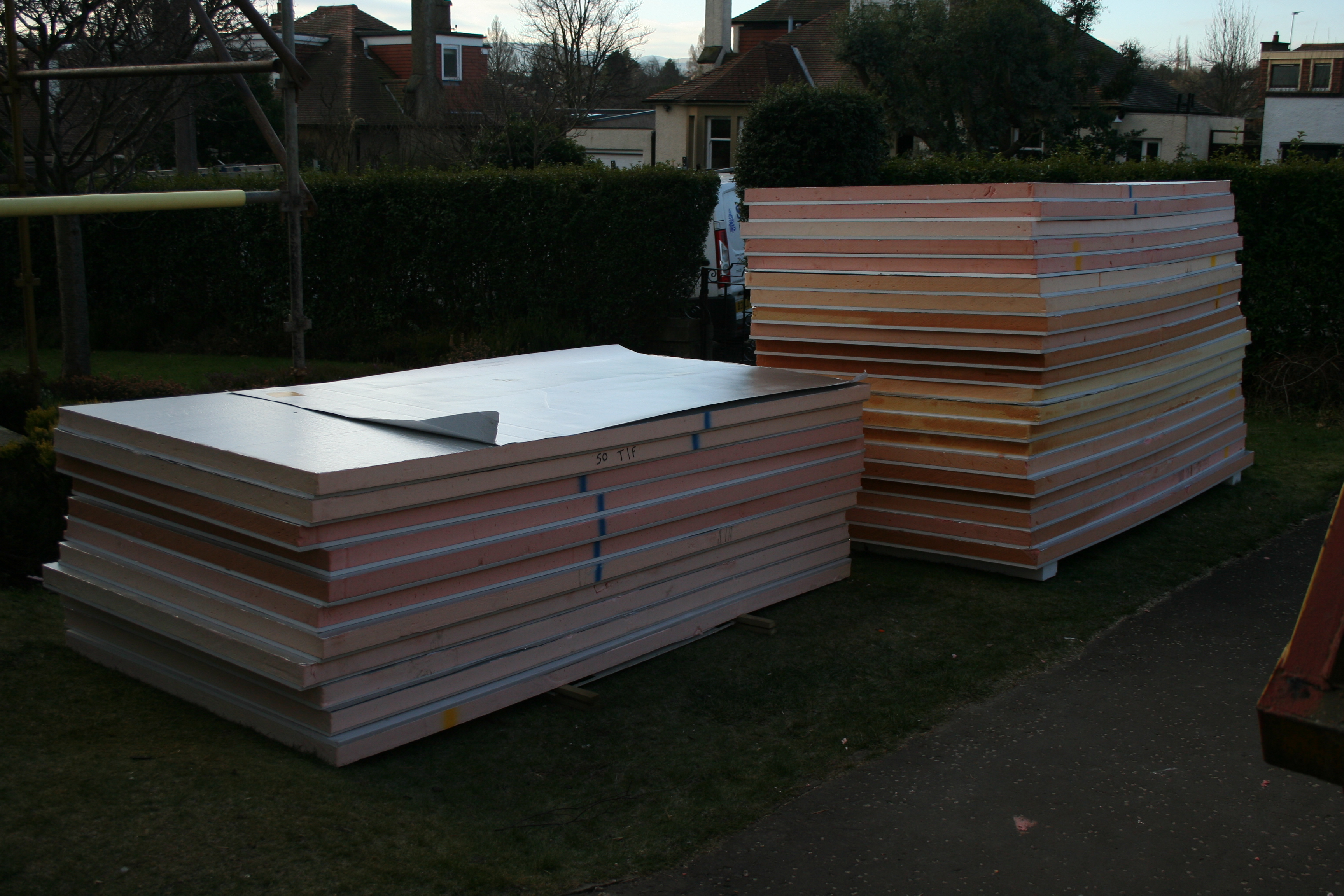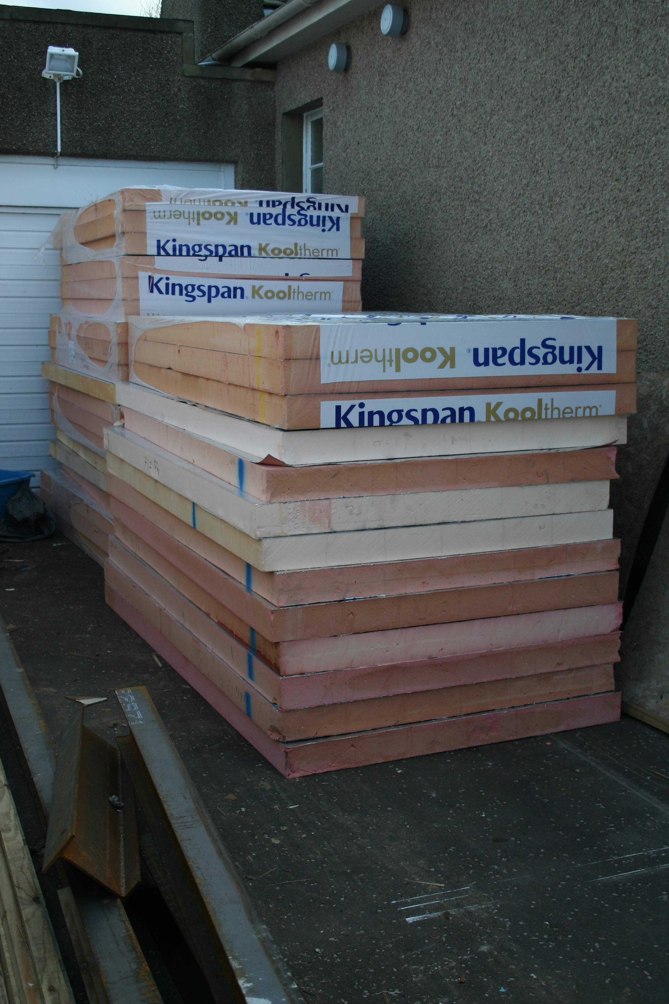 As I left to take H to school today a very big truck was arriving at the house and I was most intrigued to know what was going to be our latest delivery. Well, here it is, lots and lots of insulation. I am tempted to make myself a little den out of it because it has turned really cold here again and draughty is not the word for our place again. Mum could feel a draught in a desert – I don’t think she’d like it here at the moment.