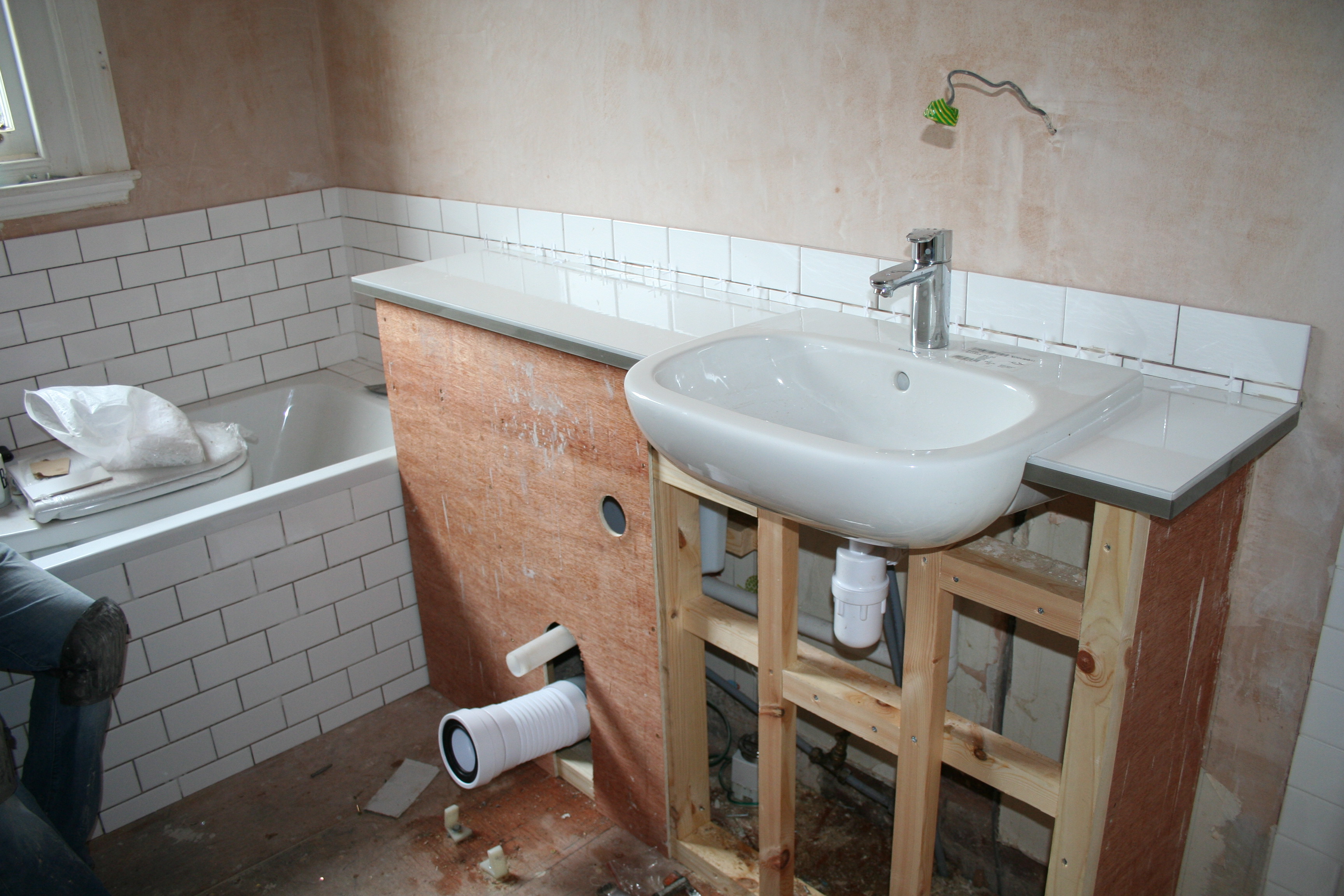 Still some grout to go and probably another couple of rows of tiles above the bulkhead, we are thinking about it overnight.  I am so pleased to see such a difference in a day and the look is exactly what I hoped for.  We even have lights that work in there, things are coming on indeed.