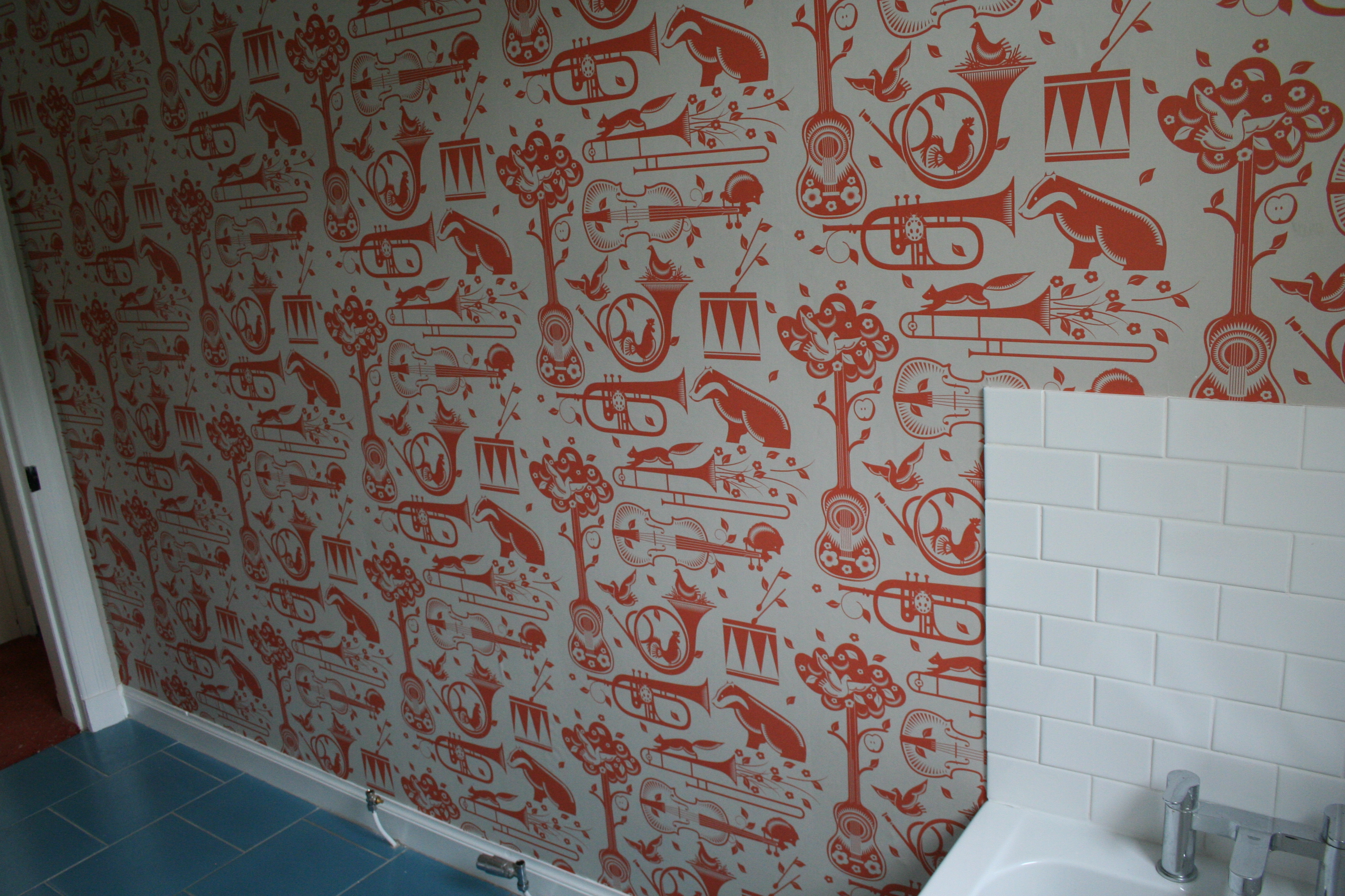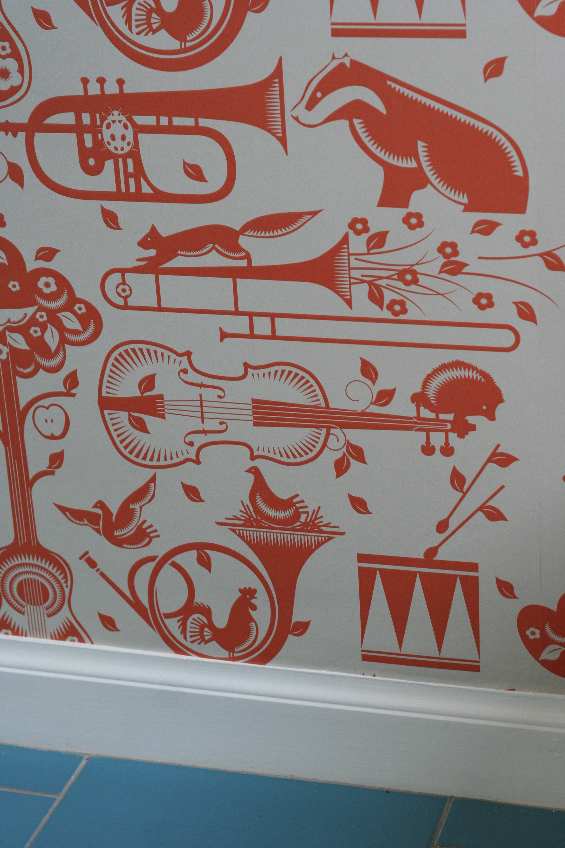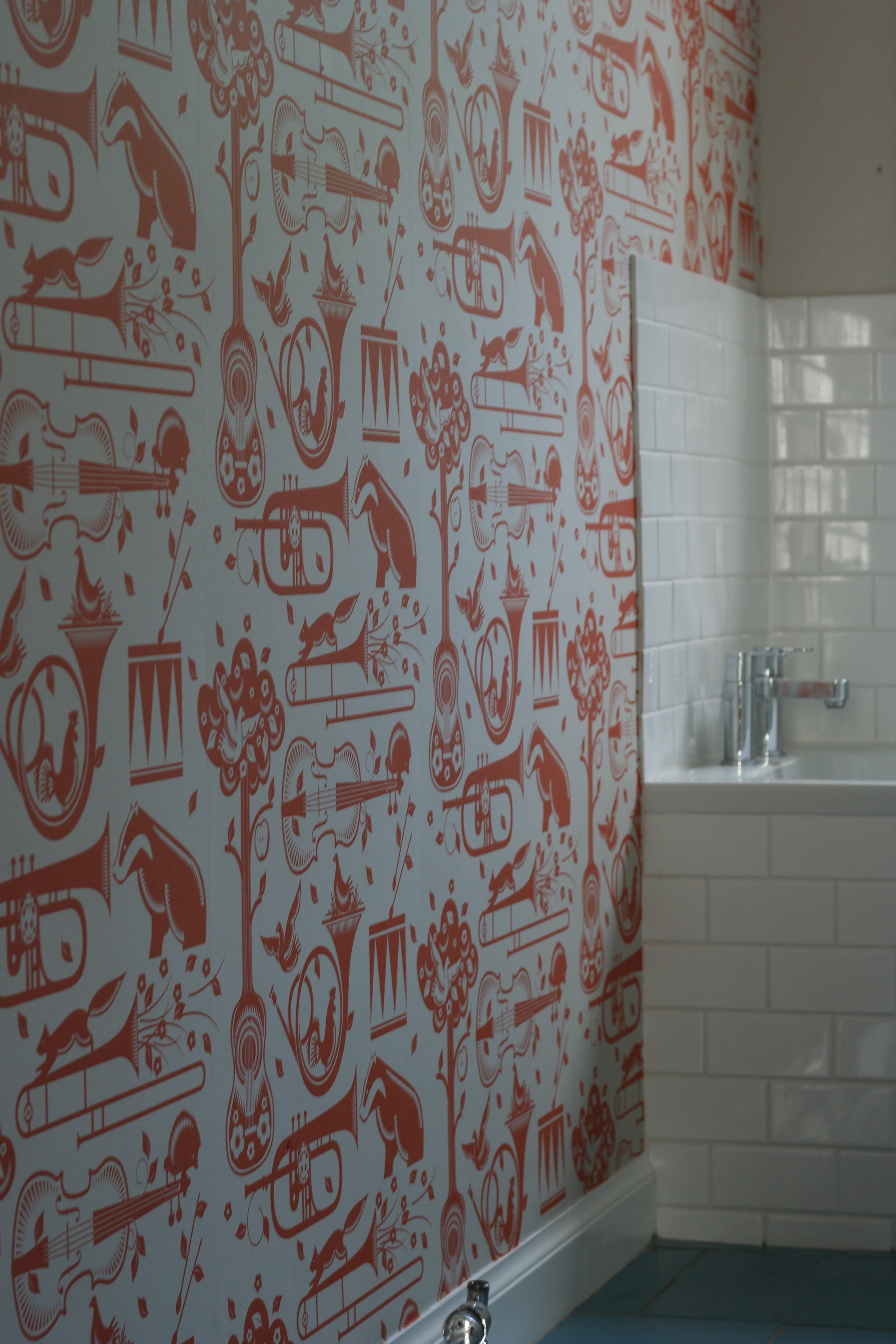 Our lovely old bungalow has a cool new vibe, the superb ‘Pet Sounds’ wallpaper graces the bathroom wall. Every time I spot it from the hall I feel a little smile come to my lips, it is bright, bold and makes the house feel like ours. The contrast with the blue tiles is just what I was after, not gaudy, just fun. This photograph does not do it justice, I assure you.
