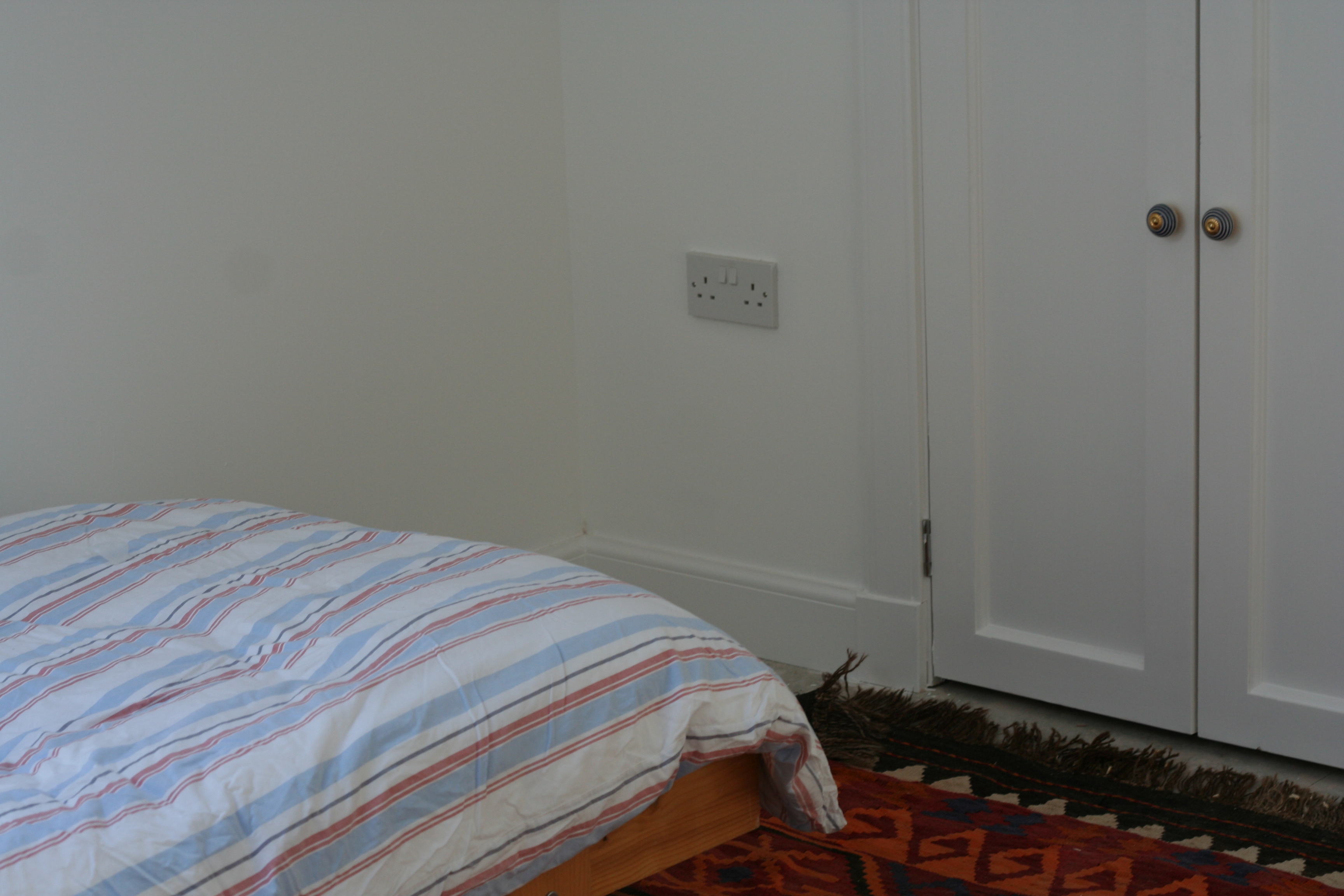 This is an old bed which, funnily enough, was in almost exactly the same position in the house before the regeneration. It’s a bit 1980’s at the moment – it’s due a wee regeneration of its own, either white or pale blue.